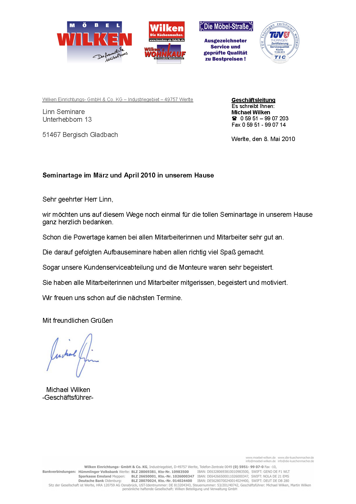Zufriedene Kunden gibt es viele - aber nur wenige schreiben Ihre Zufriedenheit nieder!