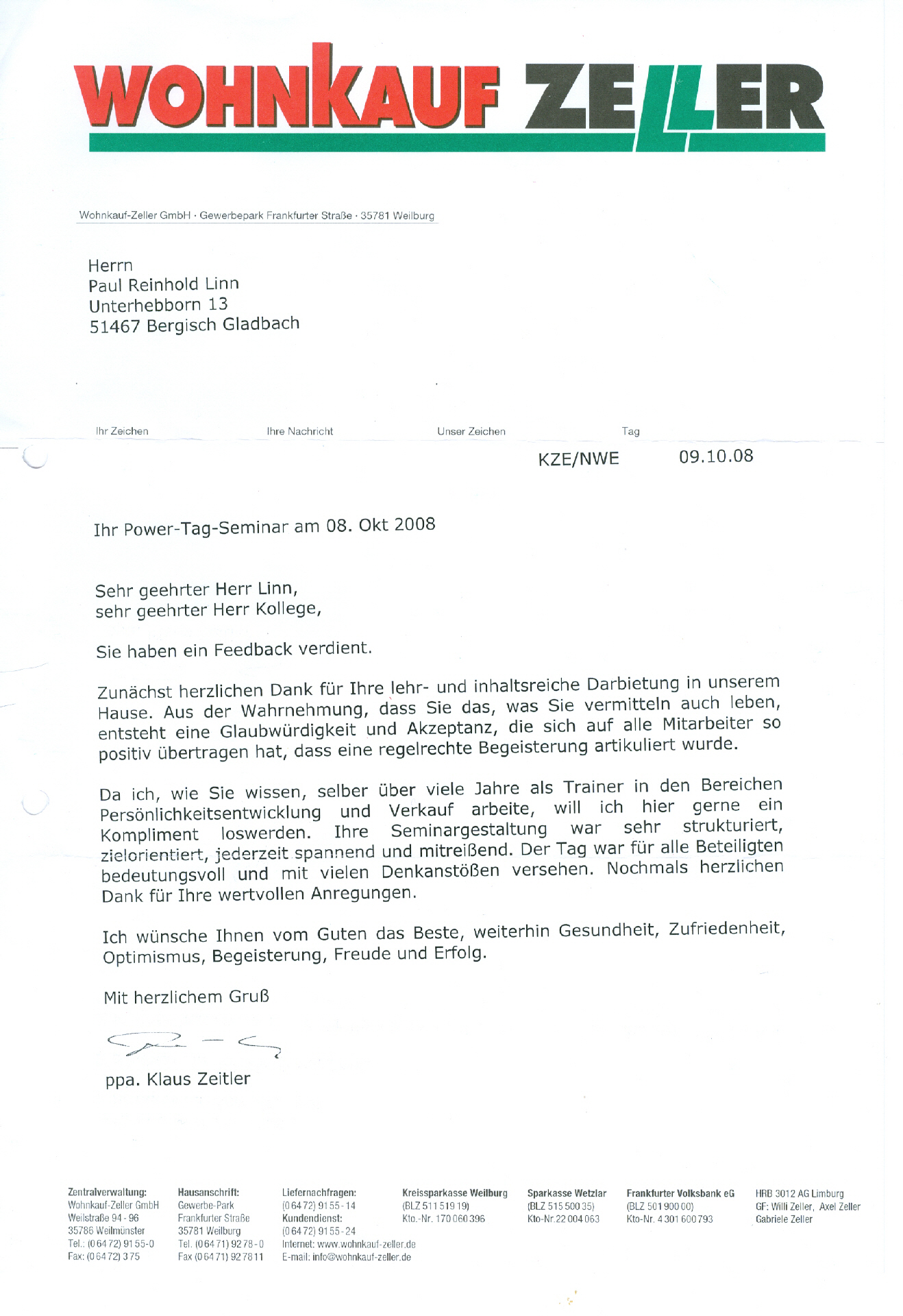 Einen sehr herzlichen Dank an die Einsender dieser Schreiben.